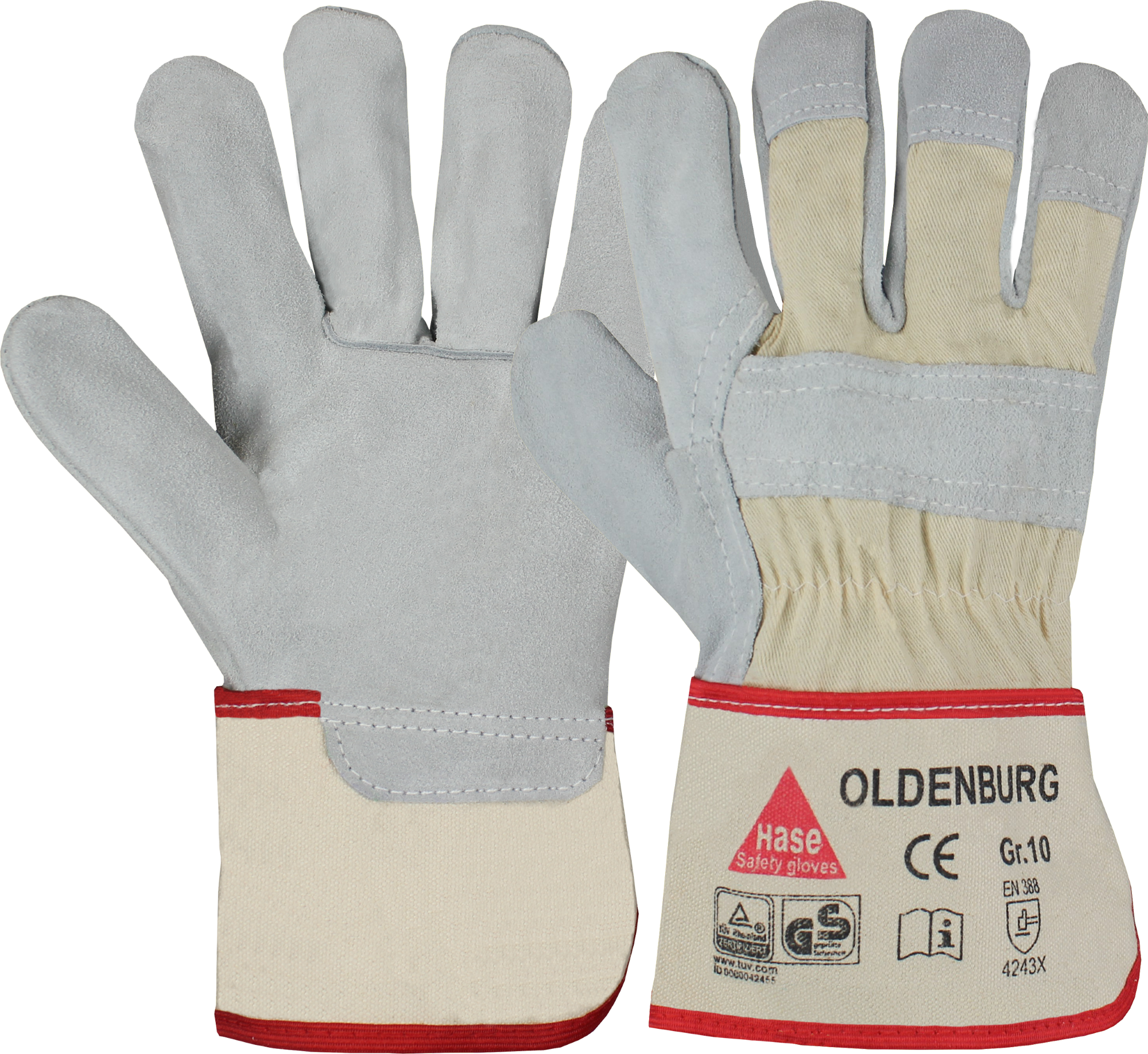 Arbeitshandschuh aus Rindspaltleder mit hohem Tragekomfort, Doppelnähten, Canvas-Stulpe, Innenhandfutter, TÜV GS